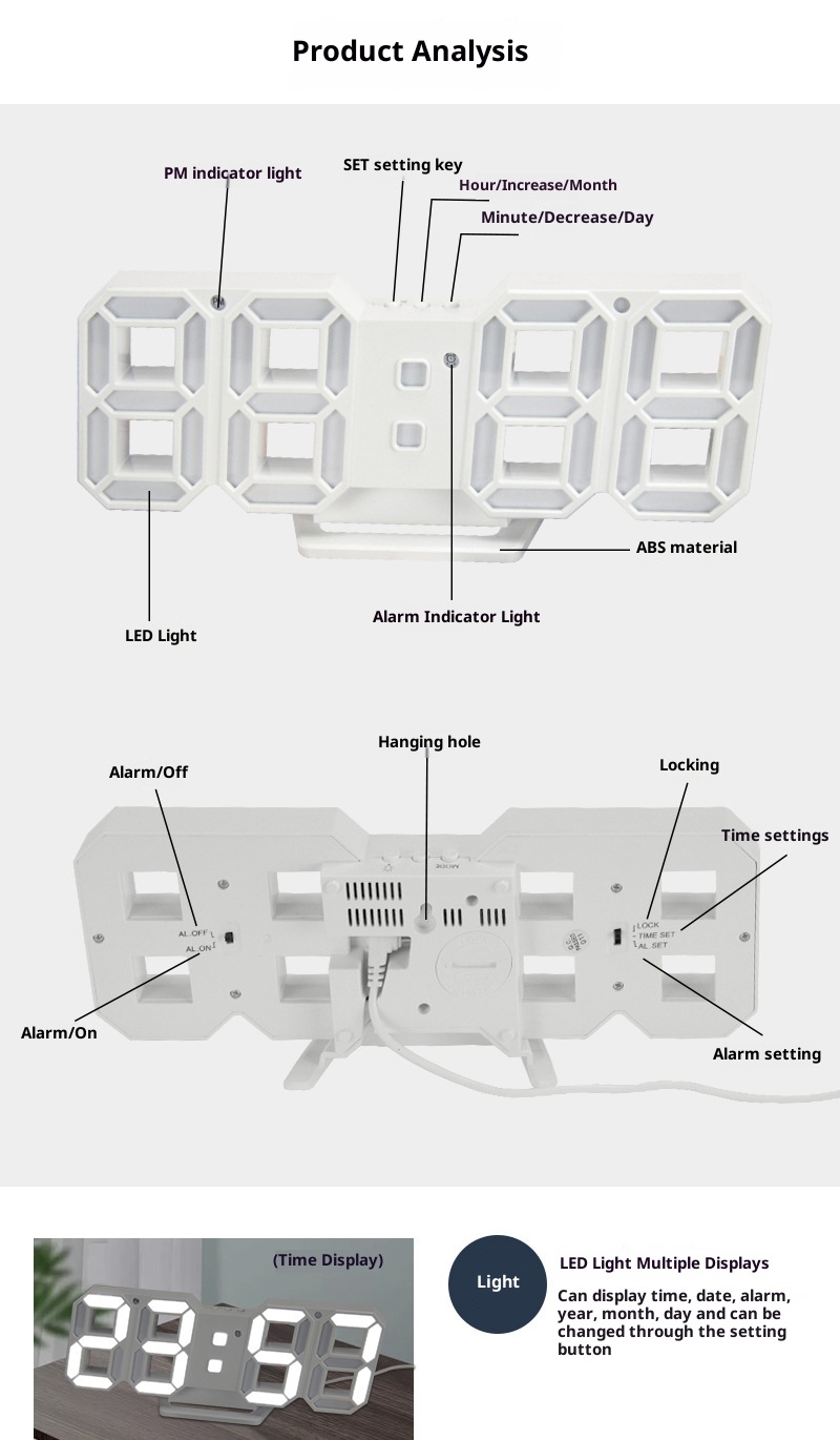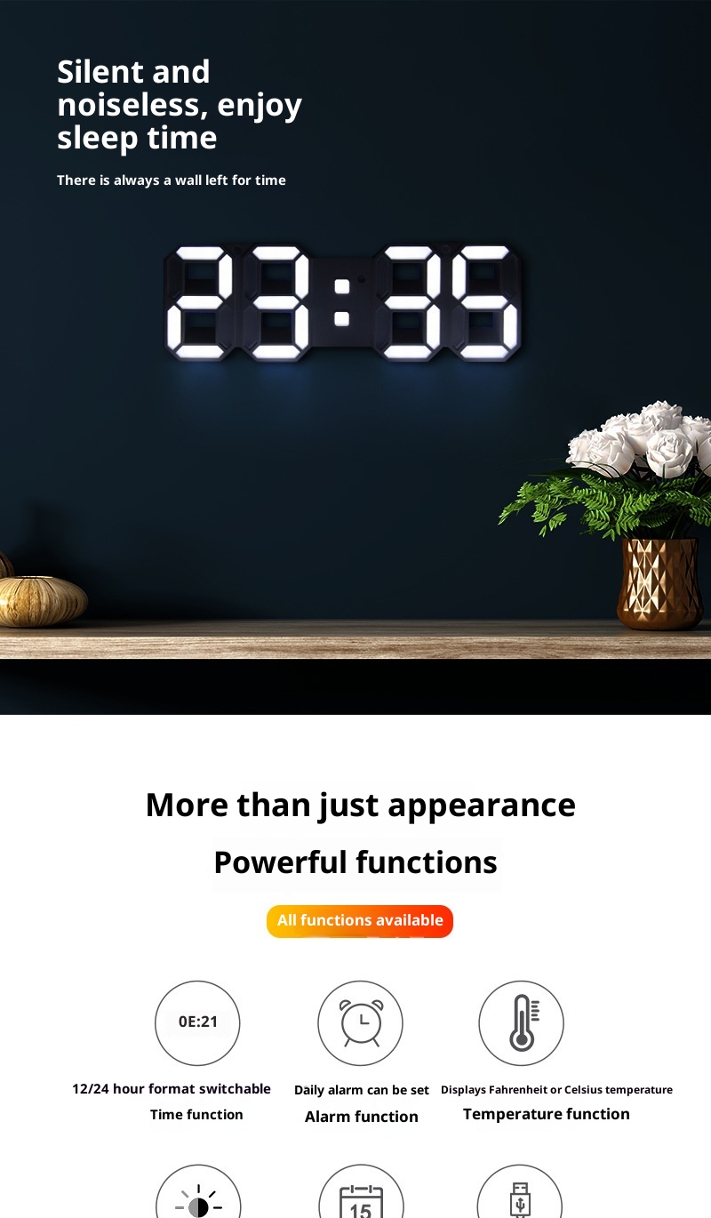 Glow-in-the-dark LED Electronic Creative Fashion Living Room Bedroom Wall Clock